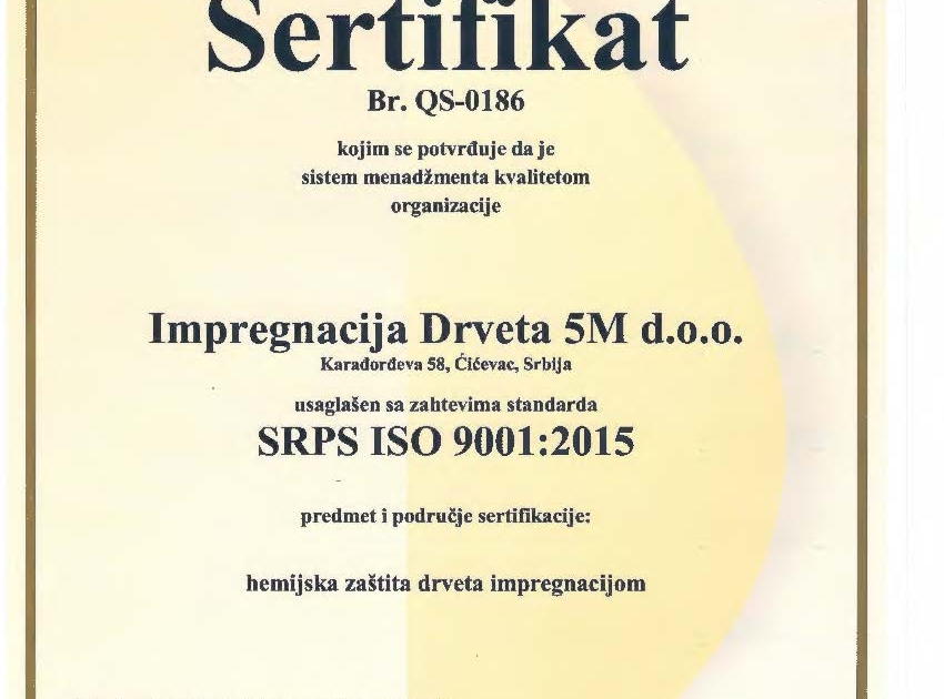 Međunarodni serfitikat ISO 9001:2015 garantuje primenu najviših standarda kvaliteta u svim fazama proizvodnje. Zaštita životne sredine deo je naše dugoročne strategije razvoja. Mi poslujemo u skladu sa svim ekološkim propisima i zahtevima nadležnih institucija za našu delatnost.
